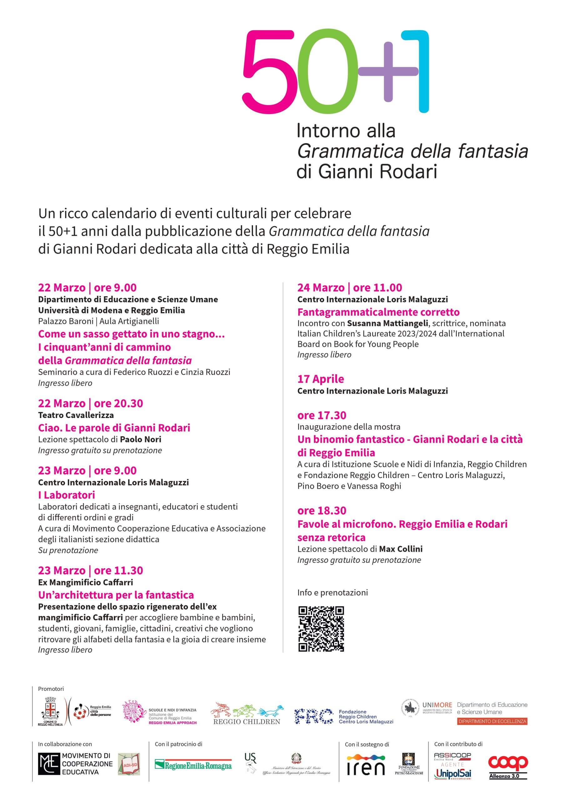Un ricco calendario di eventi culturali per celebrare il 50 + 1 anniversario della pubblicazione della Grammatica della fantasia di Gianni Rodari dedicata alla città di Reggio-Emilia